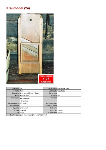 Inventarnr. 24 Gegenstand Krauthobel klein