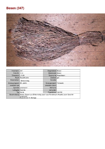 Beschreibung kleiner Besen aus Brikenreisig (auch aus Heidekraut (Hoadn)) zum Geschirr