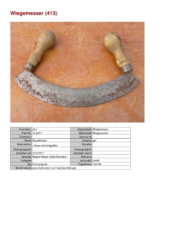 Inventarnr. 413 Gegenstand Wiegemesser