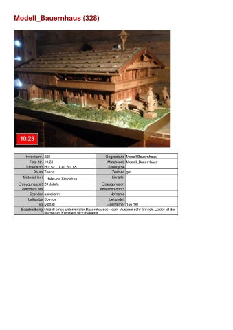 Inventarnr. 328 Gegenstand Modell Bauernhaus